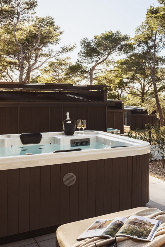The contemporary design of the glamping villa, combined with warm and natural elements, is created to make you feel special at all times. For complete relaxation, there is also a private jacuzzi, the perfect place to enjoy under the starry sky or in the solitude of a sunny day.